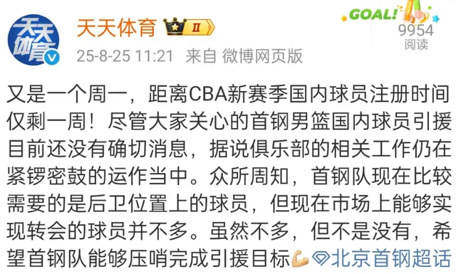 其实北京首钢上赛季补充了陈盈骏和周琦后,球队实力得到了很大的提升,但休赛期球队还是面临不小的调整,特别是非常需要补充后卫线,毕竟田宇翔离队后,方硕状态下滑明显。